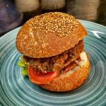 Fajitas con humus verduras plancha y pesto de cilantro y cacahuetes