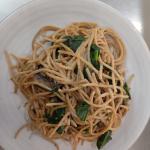 Espagueti integrales con champiñones y espinacas parmesano opcional